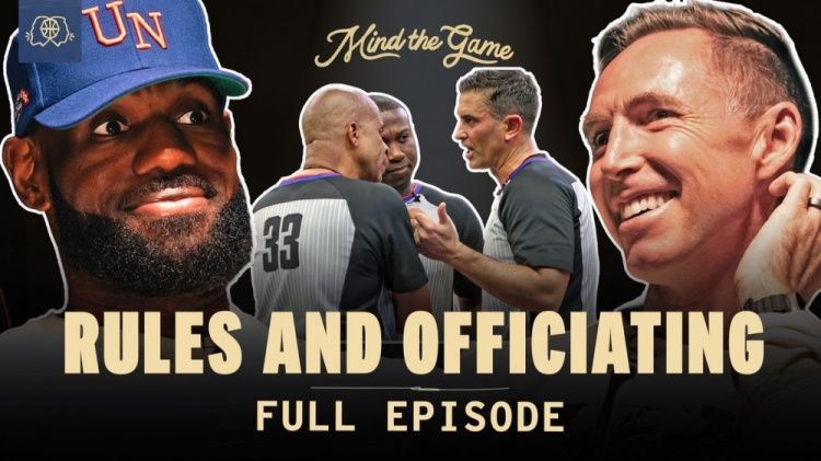 詹姆斯和纳什现场点评了一些比赛片段的吹罚情况。